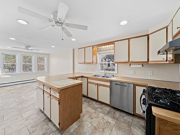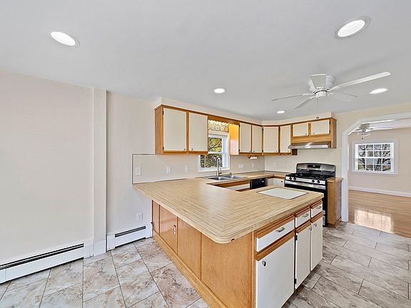 This wonderfully bright and spacious single family home was once configured as a two-family, and is in MR2 zoning on a large, level 11,500 sqft lot. The first floor offers the possibility for single floor living with bedroom and full bath, and an expansive eat-in kitchen featuring a wraparound peninsula, stainless appliances with gas range, dishwasher, microwave, French door refrigerator/freezer, all open to a pleasant breakfast/sun room with direct access to the backyard. 11+ driveway parking spaces, a 2-car garage, and a bonus carport. There is ample space for the attached shed in the back, and room for a lovely garden in the fantastic backyard. Two gas boilers service the home, and there is a 2022 water heater. Massive basement storage, and laundry area including washer and dryer. All replacement windows throughout. An unbeatable opportunity to get into Newton, buy and hold investment property (fully deleaded), or build new townhouses on a large, level 11,500 sqft lot in MR2 zoning!