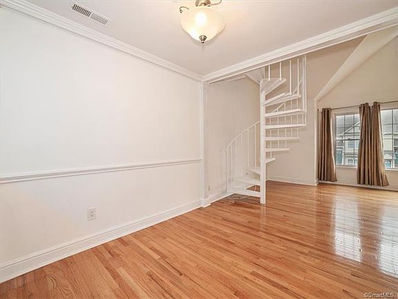 Light and bright one bedroom/one bathroom condo located in the oh-so-convenient complex the "Village at New Canaan". Upper unit with cathedral ceiling in the living room, picture window and a large loft that can double as a second bedroom and a home office. Washer and dryer off the kitchen as well as a covered deck. Gleaming hardwood floors in the living room, dining area and loft. 290 sq. ft of private storage space with it's own entry directly below the unit. Assigned parking right in front of the front door. Walk to town, shops and restaurants as well as the train station. Very well maintained complex with low common charges.