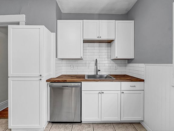 Garage spotShared backyardOriginal moulding and woodworkFresh paintButcher block countertopsShaker cabinetryRemodeled kitchen
