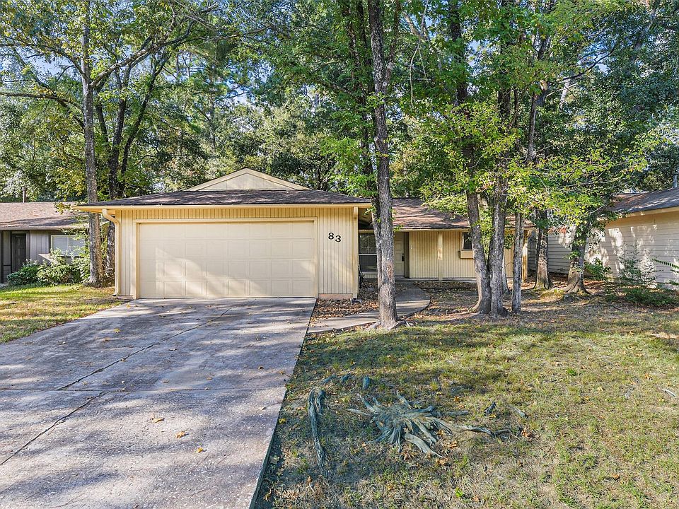 Charming 1-story in Woodlands Village Grogans Mill AS-IS. This open-concept home features three bedrooms and two full baths, wood-look vinyl flooring throughout, tile in bathrooms, natural wall accents, a wood-burning fireplace, and so much more. Kitchen includes white cabinets and appliances, including a REFRIGERATOR, granite countertops, and is open to the Living Room. Conveniently located for quick access and close to shopping and restaurants. Book your showing today!!