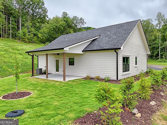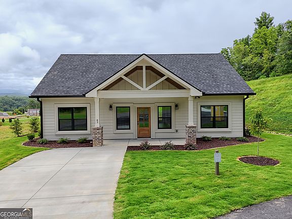 Brand New 3-bedroom, 2-bathroom Craftsman Ranch in the heart of Young Harris! Step inside to find a vaulted living room with brick fireplace, open to the kitchen and dining area. The kitchen boasts a comfort-height bar that provides plenty of workspace and encourages gatherings, with seating for four. Featuring top-quality Whirlpool stainless steel appliances, including a 5-burner gas range, granite countertops with complementing shaker-style cabinetry. Off the kitchen is a well-designed mud/laundry room and a handy baker's pantry for all your storage needs. Experience the privacy of the split bedroom layout, which features a primary suite equipped with a custom tile shower, seamless glass doors, dual vanity, and a spacious walk-in closet. The additional two bedrooms offer flexibility for use as an office or guest space, with a conveniently located bathroom in between. The outdoor living area showcases a charming rocking chair front porch and a private rear covered patio with mountain views. Enjoy the convenience of single-level living along with maintenance-free yard care through the HOA. Fine finishes include a modern color palette, stylish fixtures, brick accents, and elegant tongue-and-groove porch ceilings that elevate its charm. Located within an exclusive community of just 14 homes, you'll be a short stroll away from Main Street's shops, restaurants, Young Harris College, and more. Don't miss the opportunity to be a part of this new and upcoming community!