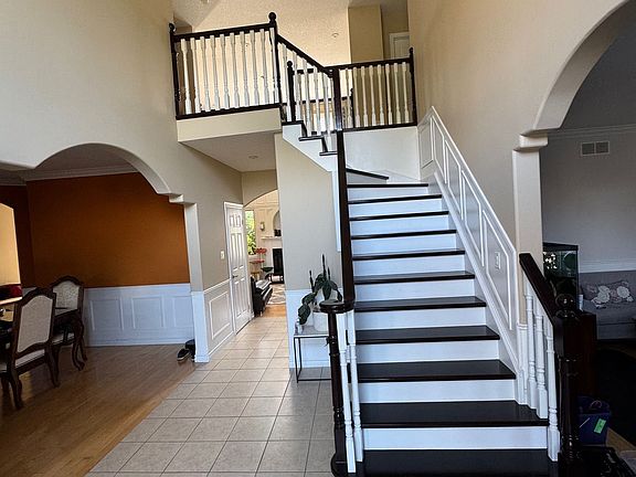 Protected green spaceGrand foyerSweeping staircaseDecorative tile inlayHardwood floorsSpacious family roomCozy fireplace