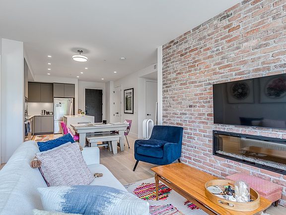Welcome to PLATFORM in PORT MOODY.FABULOUS 2 bedroom & 2 bath condo is in a HAPPINNING NEIGHBOURHOOD.From the moment you walk in you will be IMPRESSED with the open floor plan & high ceilings.Kitchen is a chef’s dream with slick cabinets+gas range+STAINLESS STEEL appliances+wall oven+QUARTZ counters+large island.Living room with its BEAUTIFUL FEATURE RECLAIMED BRICK WALL, electric fireplace.Nook/den space for home office.2 separate bedrooms.Primary Bedroom with 2 closets+5-piece ensuite.Good size 2nd Bedroom.4-piece main bath.In-suite stackable laundry closet. Covered balcony to enjoy the mountain view. Gym+bike room+bbq area in building. 1 storage locker+2 PARKING SPOTS near elevator.Explore the area with ROCKY POINT PARK+trails+BREWERS ROAD+Skytrain OPEN HOUSE SUNDAY OCTOBER 5 1-3pm