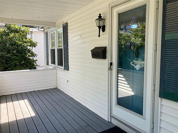 Pretty Cape in a prime location off Veteran's Memorial Pkwy! This 2 bed, 1 1/2 bath, home offers a big front-to-back double living room in addition to the formal dining room with French doors that opens to the kitchen. Kitchen is spacious and is equipped with almost new stainless steel appliances, remaining. Dining room could also be used as an office, playroom or possibly converted to a 3rd bedroom. Also on the first floor is a full bath. Second floor has 2 bedrooms and a half bath. Hardwoods throughout. Newer central air. Oil heat, gas hot water. Welcoming open front porch. Nice 3-season enclosed back porch with jalousie windows adds additional living area. Off the back porch is a large deck overlooking a private backyard. Detached 1-car garage. Some TLC/updating would make it a really darling house. Great house in a very desirable location!