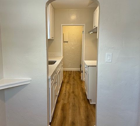 Cute cottage few steps away form Main Street. Close to eateries, shops, entertainment and across the street from Ventura High School. This 1+1 has a new kitchen with quartz counter tops, new gas stove and new plank flooring. Original hardwood flooring in the living room, hallway and bedroom. Large coat closet in the living and linen closet in the hallway. New vinyl windows throughout with new window coverings. New click flooring in kitchen, dinning area and bathroom. Shared laundry room on the premises.