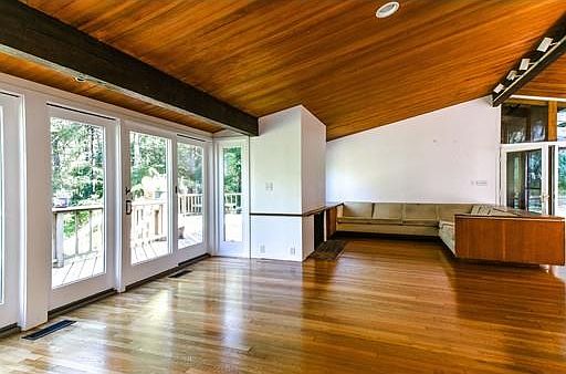 Fabulous Mid Century Modern home custom designed by the original owner architects! This is a wonderful sunny home with open floor plan, cathedral ceilings and lots of large windows and sliders that bring the outside in. The upper level includes huge fireplaced great room, separate dining room and kitchen, open to decks, inviting pergola space with hot tub and huge screened porch. There is a laundry, 3 bedrooms and 2 full baths. The lower level which is above ground and walk out has 2 additional bedrooms, full bath and huge office/family room space with built ins. The floor plan is extremely flexible and offers living space for a variety of lifestyles. There are glorious gardens, mature trees, paddock area and plenty of room to play. One of a kind opportunity for Buyers looking for bright, open interior spaces in tune with the environment. Beautifully sited on 5.42 acres of some of the prettiest land in town!!