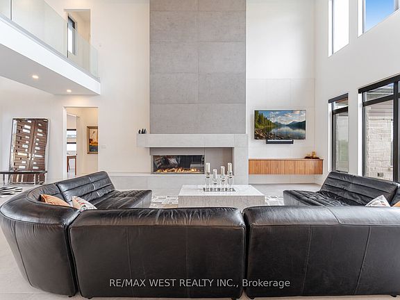 Luxury living on the Bay of Quinte begins at 83 Navigation Drive. An extraordinary custom-built residence in the prestigious Watermark on the Bay community. Set on approximately one acre with breathtaking waterfront views, this architectural masterpiece offers over 7,700 sq ft finished and refined living space and an oversized 3-car garage. Built within the last five years, this home blends high-end design with advanced home automation for effortless modern living. Inside, every detail has been thoughtfully curated from soaring 10 foot ceilings and European porcelain 48" tile to wide-open living areas anchored by a walnut and glass staircase. The opulent chef's kitchen is equipped with premium Thermador appliances, including stainless steel side-by-side fridge, freezer, and wine cooler, including an induction cooktop, built-in coffee machine, double wall ovens, and more perfect for entertaining or everyday luxury. Enjoy seamless free flowing open concept living through the 22 foot ceiling height of the great room, dining area, kitchen and breakfast area all bathed in natural light with panoramic water views. The primary suite is a private retreat with a spa-inspired ensuite, heated floors, and a custom walk-in closet. Upstairs, a media lounge and additional bedrooms offer space for family and guests, while the finished walk-out lower level adds flexible living. Exquisite chandeliers, light fixtures and HeliFire 360 architectural fire features. Step outside to a covered stone terrace and swimming pool all overlooking the serene Bay of Quinte. This property is sophisticated, spacious and one-of-a-kind.