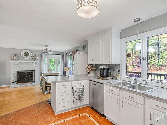 Your Dream Home Awaits! A stunning colonial nestled on a tranquil road surrounded by lush nature. Imagine sipping your morning coffee on the back deck, w/ soothing sounds of the outdoors providing relaxation. Or enjoy peaceful moments in your 3 season room encased in glass, bringing the outdoors in. Upon entering, you’ll be greeted by a spacious FR and a cozy LR featuring a FP that seamlessly opens to the dining area w/ sliders leading to the expansive deck. The white kitchen with SS appliances, includes a peninsula for casual dining. Next, you’ll discover a generous DR w/ a bay window and french doors to the sunroom, flooding the space with natural light. Upstairs, the large primary bdrm boasts two closets and ensuite bath w/ shower. The main bath has been updated w modern touches. Two more well sized bdrms and 4th versitile room that can be used as nursery/office/den complete the 2nd floor. The partially finished basement offers more options,plus laundry. Don't miss this opportunity!