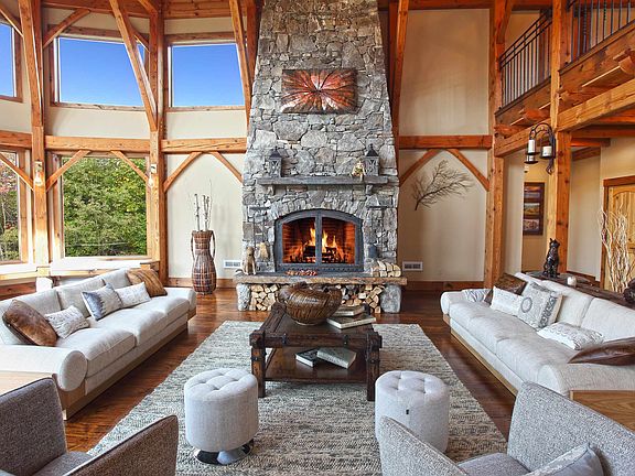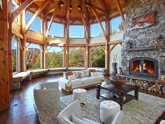 This spectacular Post and Beam home designed by Moss Creek Designs features over 7,000 square feet of luxury and attention to every detail. Six bedrooms and seven bathrooms, spaciously laid out over three levels with views, views and more spectacular views of Mount Snow! A gourmet kitchen features a sub-zero refrigerator, Wolf gas range and double ovens, a copper farmhouse sink, and classic custom cabinets. The dining room with its' own fireplace is perfect for cozy meals with friends and family on those snowy Vermont evenings! The great room with custom post and beam adorning the ceiling and walls hosts an oversized fireplace with custom stonework from floor to ceiling. Designed with new furnishings, the great room lends to relaxing by the fire and gazing at the perfect Vermont sunsets over Mount Snow or the fireworks display during holiday weekends! This home is situated on 2.68 acres with your very own pond and views only the select few will experience. To complete this perfect location, on-demand shuttle is offered to and from Mount Snow, as well as use of the Greenspring clubhouse featuring an indoor pool, full gym, community room, hot tub, outdoor firepit and tennis courts. On-site property management will take care of your upkeep so you can enjoy your downtime in this lovely piece of heaven. A rare opportunity to own a home in the prestigious Peaks community!