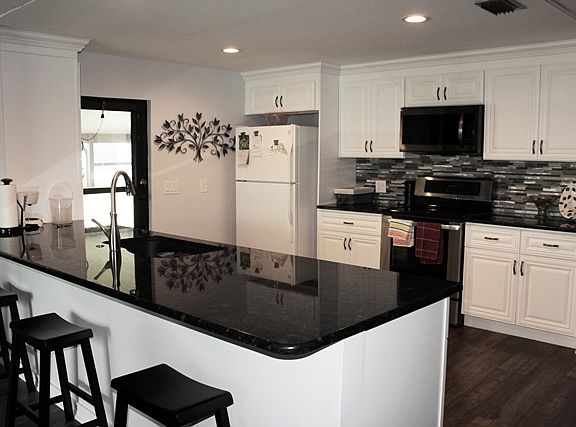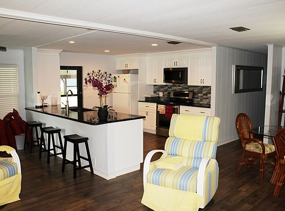 SALE PENDING ~ Location, location, location - on a lake with water views from your kitchen, living room and lanai! Beautiful, new laminate flooring in main living areas and bedrooms. Remodeled kitchen with an open floorplan and huge breakfast bar. New cabinets, granite countertops and glass tile backsplash, newer appliances, pantry cabinet and crown molding. Dining room with large built-in china hutch and designer chandelier. Main living area has been freshly painted. Master has his and her walk-in corner closets and large en-suite bathroom. Oversized guest bathroom too. You will want to live on the shaded, raised lanai with windows and tile flooring. Clothes washer and dryer in lower screened lanai with lake views. Nice landscaping. Roof over and extra deep carport. Clam shell storm shutters. Furnished. Jamaica Bay is a very active, 55+ community (20% of our residents can be 45 – 54) with many clubs, sports and activities for the residents. Amenities include two swimming pools, three clubhouses, hot tub, sauna, fitness center, library, billiard room, shuffle board, tennis courts and pickle ball courts. HOA fee includes: site lease (no property taxes), water/sewer, trash/recycle, lawn mowing, basic cable, 24 hour attended gatehouse and access to all community amenities. By clicking Contact Agent, you will be communicating directly with the official Jamaica Bay on-site sales office allowing you access to all of our listings in the community.