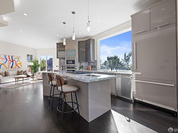 Experience luxury living with breathtaking panoramic views at 83 Panorama Drive, nestled in the heart of San Francisco's exclusive Midtown Terrace neighborhood. This beautifully remodeled residence features a modern, sleek design with an open, light-filled floor plan, soaring high ceilings, and expansive windows that capture sweeping city and bay vistas. The main level boasts a spacious living and dining area ideal for entertaining and anchored a stylish, chic fireplace. The chef-inspired kitchen is equipped with high-end stainless-steel appliances, clean modern lines that balance style and function. Enjoy three generously sized ensuite bedrooms, each designed as a private haven of comfort and elegance. The lower level includes a versatile great room/family room, inviting cozy movie nights, game days, or sophisticated gatherings with friends and family. Thoughtfully designed as a curated showcase of modern living, every detail of this home balances form and functionality. This home offers the best of San Francisco living, peaceful, residential charm with easy access to everyday conveniences. Just minutes from Starbucks, Molly Stone's, local restaurants, cafes, and easy public transit, this home provides combines serene hillside charm living with unbeatable city convenience.
