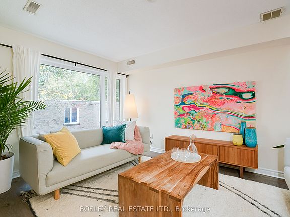 Welcome to your hidden oasis in one of Toronto's most sought-after neighborhoods! This stacked townhouse sits in an exclusive enclave right in the heart of trendy Leslieville - close to everything you love, yet blissfully tucked away from the buzz. Inside, you'll find 3 bright and spacious bedrooms, 2 bathrooms, and a fabulous open layout designed for easy living and entertaining. The newly renovated kitchen shines, and the adjoining solarium floods the dining area with natural light - the perfect spot for morning coffee or leisurely dinners. Upstairs, the large primary bedroom features a semi-ensuite and walk-up to your private rooftop terrace with stunning city and sunset views - a dreamy urban escape. Freshly painted throughout with brand new carpet on the stairs, this home feels fresh, stylish, and move-in ready. Complete with parking and a locker, and a brand new heat pump, this one checks every box. Sounds too good to be true? It just might be - better hurry before its gone! Oh, don't forget to check out the coolest locker in the city! See the photos!
