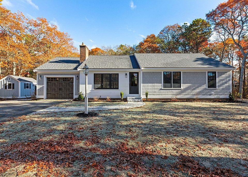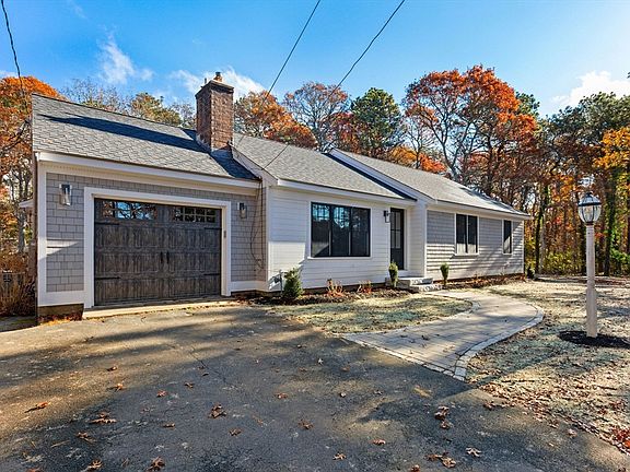 Everything has been professionally updated in this "hidden gem", both inside and out. Open concept floor plan seamlessly flowing from fireplace'd living room to vaulted ceilings in kitchen, dining room and family room, all on the main level. Dining Room/ Family room direct slider walkouts to rear yard and 550+/- SF patio. Everything was touched and replaced new - roof, siding, trim and windows (black) on the house and garage. All the exterior walkways and patio (previously a deck) have been replaced and upgraded. Inside the home, all systems are new- 200 AMP electric panel, new HVAC system (including ducts), plumbing, white oak hard wood floors, kitchen, cabinets, quartzite counters (and on peninsula), s/s appliances, both bathrooms have been thoroughly updated, both with new tub w/ tile surround, vanity and fixtures- yes, all permitted, inspected and very expensive. All appliances (including laundry) are included. The septic system was upgraded in 2023. Please note room sizes.