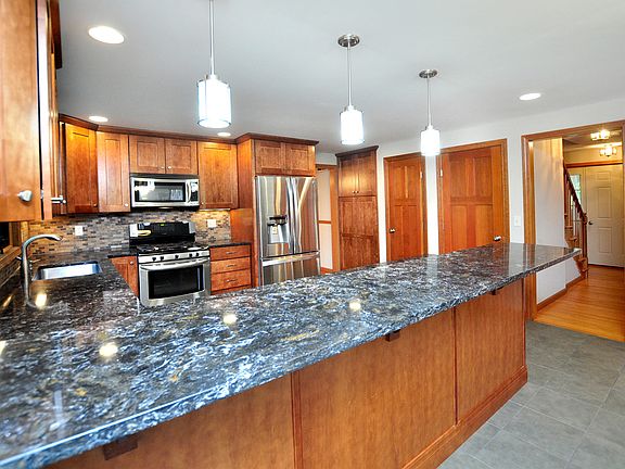 Radiating character and comfort, this gorgeous three-bedroom Colonial unites traditional beauty with the convenience of contemporary living. A tranquil cul-de-sac location and a lovely, covered front porch combine to create wonderful curb appeal. In the heart of this home is the renovated kitchen featuring beautiful maple cabinetry, granite countertops, an island/breakfast bar, stainless steel appliances, tile flooring, a tile backsplash, pendant, recessed and undermount lighting, a dine-in area, a slider to the deck and a pantry. With a vaulted ceiling, a wood burning fireplace and a second slider, the open family room looks out over the deck. Made for hosting memories, the formal dining room features hardwood flooring, crown molding and a chair rail. The inviting living room is ideal for relaxing with your guests after dinner. Completing the first level is a half bath. Ascend the second level to the oasis of the Primary bedroom with a walk-in closet and a designated full bath. The second level also boasts two additional bedrooms and a second full bath. The partially finished lower level offers two finished rooms (14' x 18' and 16' x 12'), perfect for a recreation room and media room, office or home gym. Overlooking the backyard, the two tiered deck is perfect for summer barbecues and outdoor entertainment. Invaluable updates include newer windows and sliders, 200 amp electrical, central air, fresh interior paint and low maintenance vinyl siding. The seller is requesting highest and best by Friday, Oct. 3 at 11 a.m. The seller will be responding to all offers by Friday, Oct. 3, at 6 p.m. The seller reserves the right to accept an offer at any time.