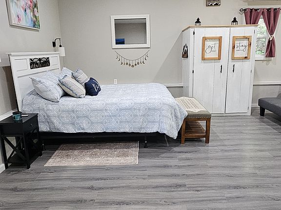 This guesthouse has a beautiful fireplace to keep you warm during those chilly fall nights in an open concept living space stocked full of all the essentials you could need while visiting. Handmade furniture showcases the time and effort that were put into this home as it used to be a garage. Countless hours were dedicated to making this place a fully functioning home and we cant wait to show it off.What are you waiting for? Come be our guest!