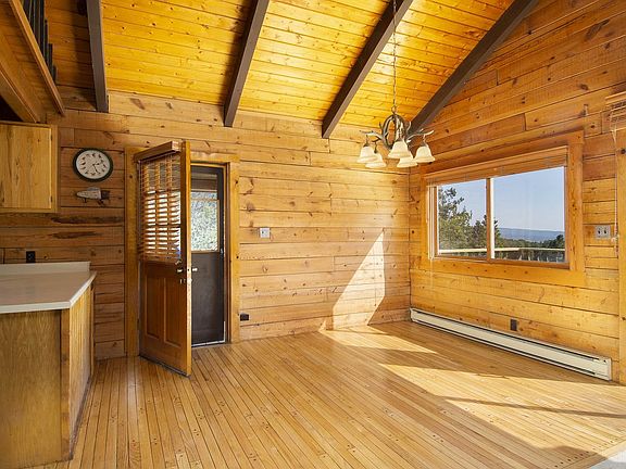 Looking for a safe, welcoming hideaway within half an hour of Santa Fe? Come home to this cozy, authentic log-cabin-construction house nestled on 2.5 acres in the Pecos pines - best accessed by SUV or similar! Enjoy big, southerly views from the sprawling, newly rebuilt front deck (Fall 2020); a spacious living/dining area with beautiful natural light and a Vermont Castings direct-vent wood burning stove; a sizeable, open-plan, highly functional kitchen space (no tiny-house compromises here!) and laundry room and a nicely finished loft that spans much of the home's footprint. One bedroom features custom built-in bookshelves across an entire wall and houses the loft access - a charming study room with multiple uses possible. There's a great, large fenced area, too! The pitched, propanel roof and skylight were entirely rebuilt in 2019 after hail damage, and the greenhouse out back was even rebuilt entirely as well. An all-electric home, the building provides a terrific future opportunity for an even lower carbon footprint with a solar upgrade, and Internet connectivity through a local provider is strong. There's room off the north side of the house to expand a carport or garage, and there are other potential building envelopes on the parcel as well. This home could be a charming second home with quick access to Pecos wilderness and Santa Fe attractions, or it can easily serve as a lovely, full-time residence - a terrific opportunity in a hot market!