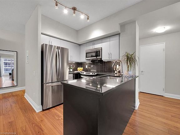 Stylish 1-Bedroom Condo with Versatile Den, Underground Parking & Roomy Locker in a fantastic modern condo is for sale now! The open-concept kitchen features quartz countertops, a tile backsplash, under-cabinet lighting, and upgraded appliances, including a French door fridge (in 2023) and dishwasher (in 2023). The unit is completely carpet-free, boasting newly installed hardwood floors (in 2023) in the bedroom and a balcony upgraded with durable interlocking deck tiles (in 2023). Enjoy direct access to the balcony from both the living room and bedroom. Additionally, enjoy the convenience of ensuite laundry with a sleek, upgraded washer and dryer (in 2023). The spacious den can serve as a second bedroom or a functional home office. Located in a vibrant condo complex, you'll have access to exceptional amenities: a gym, BBQ area, rooftop deck with city views, hot tub, billiards, party room, theatre, basketball court, guest suites, and more. Don't miss this opportunity—schedule your showing today and make this beautiful condo your new home!