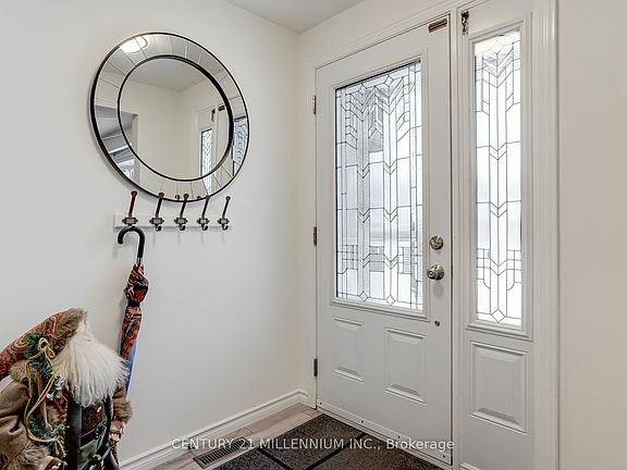 Perfect Child Safe Court Location In Prestigious Ridgehill Manor Estates Adjacent To Private Conservation/Parkland. Great School District Including Public/Separate Grade Schools, Secondary Schools, Recreation Centre And Shopping. Beautiful Architectural Design Stucco And Stone Facade. Huge Pie Shaped Lot Fully Fenced In With Pressure Treated Wood Fence, Large Interlocking Paver Stone Patio/Built-In Planters. Open Concept Living/Dining Rooms With Upgraded Hardwood Flooring And Sun Filled Bay Window. Modern Eat In Kitchen With Ample White Cabinetry, Quartz Counters, Apron Sink, Pot Lighting, Wall To Wall Pantry With Loads Of Storage Cabinetry and Lit Display Glass Doors, Stainless Steel Appliances, W/O To Patio. Interior Garage Access. Four Spacious Bedrooms, Huge Primary With Wall To Wall Mirrored Glass Doors Clothes Closet. Spa Like Main Bath With Jetted Soaker Tub, Separate Shower Stall/Shower Head Tempered Glass.