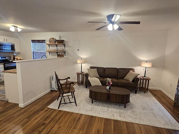 One-level townhouseAttached one-car garageFunctional kitchenTwo comfortable bedroomsStackable washer and dryerLaminate flooring throughout
