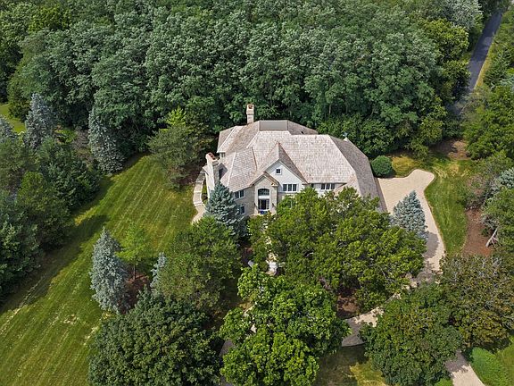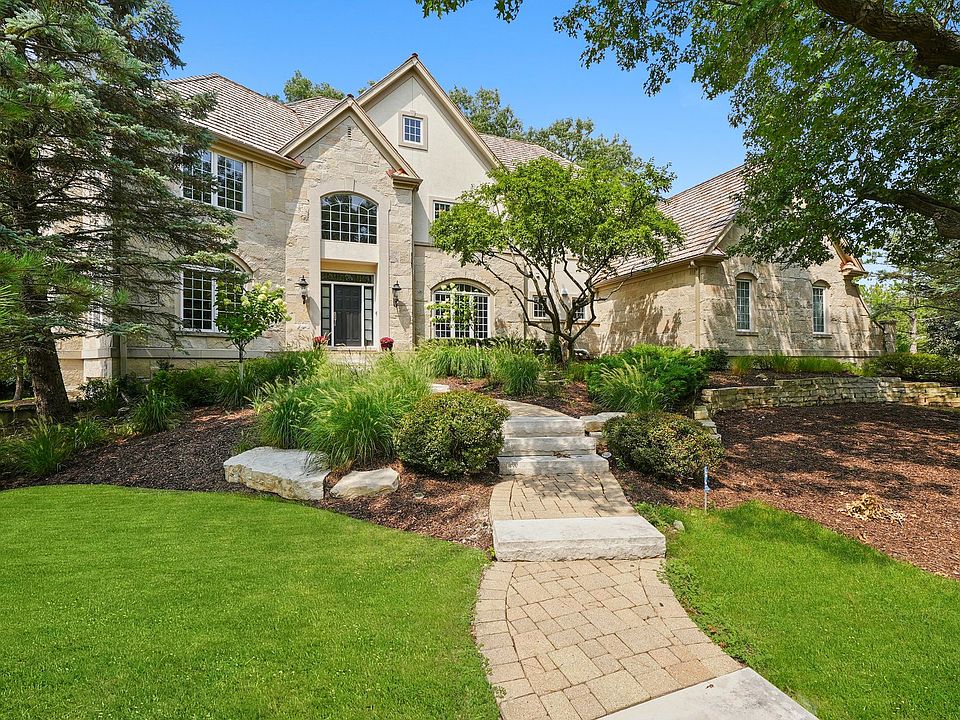 Located in the prestigious gated community of Wynstone, home to the renowned Jack Nicklaus Signature Golf Course, this stone-exterior residence boasts a 2025 cedar shake roof, lush landscaping, a circular brick-paver driveway/entryway, and a 4.5 car garage-perfect for your car and golf cart. Inside, exceptional craftsmanship is evident in six fireplaces, custom millwork, elegant built-ins, and a spacious walk-out lower level. The two-story foyer with gleaming hardwood floors opens to formal living and dining rooms, while the great room features a dramatic floor-to-ceiling stone fireplace and soaring curved windows that flood the space with natural light. A distinguished library with coffered ceiling and fireplace adds further elegance. The chef's kitchen is equipped with top-of-the-line stainless steel appliances, including a SubZero custom wood-paneled refrigerator, a large hidden walk-in pantry, granite countertops, a generous island with breakfast bar, and a 6-burner Thermador cooktop with built-in griddle and heat lamps. A bright eating area opens to the expansive brick-paver patio and private backyard-perfect for entertaining. The main level also includes a laundry room and two powder rooms. Upstairs, the luxurious primary suite offers a cozy fireplace, tray ceiling, expansive walk-in closet, and spa-inspired en suite bathroom with dual vanities, whirlpool tub, and separate steam shower. The landing area includes an electrical outlet above the front door, ideal for holiday displays. Three additional bedrooms include one with en suite bathroom and two sharing a full bath. An unfinished same-level attic space is ready for customization. The finished walk-out lower level overlooks the side yard and features a recreation room, game room, bedroom/exercise space, and a full bath, along with abundant storage in both the lower level and the second attic. Smart-home amenities include Wi-Fi-enabled thermostats, garage door openers, and a remote-controlled doorbell system. ADT home security system installed.