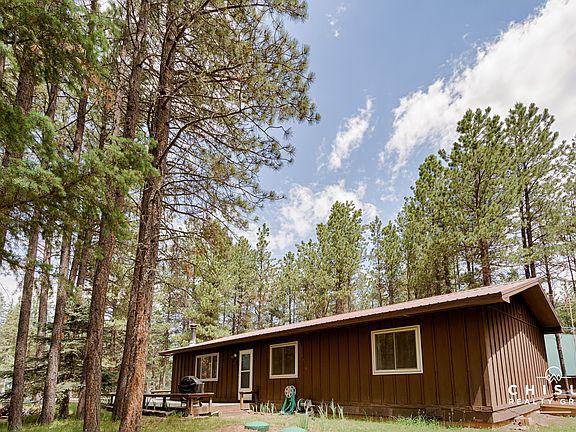 Escape to the mountains in this beautiful 3 bedroom, 2 bathroom freshly updated home. This is the ideal getaway property for anyone that wants a nice, easy flat driveway, gorgeous thinned and cleared lot. Or, make this your permanent home right here in Angel Fire. Enter the property with a convenient circular driveway and fenced in yard to keep the furry friends at bay. The home has a beautiful deck that wraps around two sides so that you can chase the sun all day long. Hang out on long summers days and enjoy the fresh mountain air. A lovingly updated open plan living, kitchen and dining room. Granite counters, new appliances and new cabinets will delight you as you cook up a storm in this well appointed kitchen. Cozy up with the fire going and sip on hot cocoa as you watch the snow fall. Down the hall, you'll find two great size bedrooms (one currently used as an office) and a main updated bathroom. At the end of the hall is the master bedroom with ensuite, tastefully updated shower and vanity complete this space. Off the laundry room is a double garage which is also heated. The house is situated on two lots, combined and thinned so all you have to do is pack your toothbrush and get here to start your well deserved mountain life!