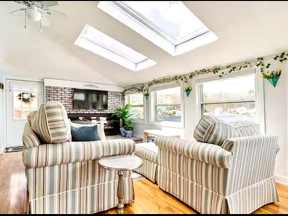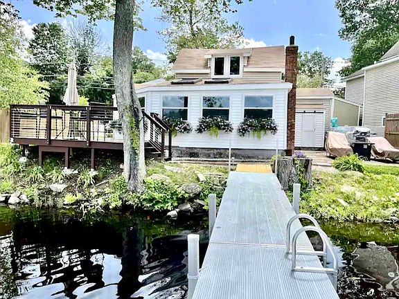 Seasonal Waterfront opportunity just in time to spend the Spring and Summer, RIGHT ON THE WATER! Turn key fully furnished, has been used as an Airbnb. You will enjoy amazing VIEWS of Shadow Lake with swimming, boating and fishing right outside your door. The first floor has an open concept living room and dining, renovated bath, and kitchen. The layout is perfect for summer fun gatherings. Wake up every morning to views of the lake from the private bedroom on the second floor and end the day with spectacular sunsets. Oversized lot allows for outdoor relaxing on the patio or deck, gardening, games, barbeque and more! Convenient location. Just 1 Mile from Tuscan Village, near town forest, rail trail, restaurants, shopping and rt 93. Home comes fully furnished