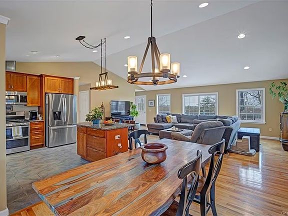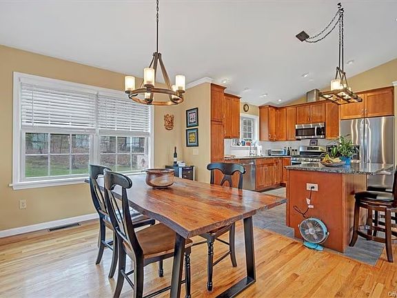 Enjoy sweeping Shawangunk and Catskill Mountain views from this bright, well-appointed home conveniently located between Kingston and the Village of New Paltz. Filled with natural light, the great room features cathedral ceilings, hardwood floors, and a propane fireplace perfect for relaxing or entertaining.