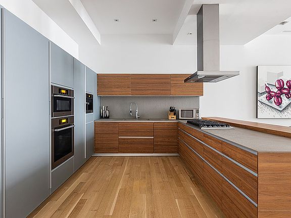 Three spacious bedroomsSoaring ceilingsLarge laundry roomPrivate theatreHolly hunt converge wallpaperCustom millworkPrivate-access elevator