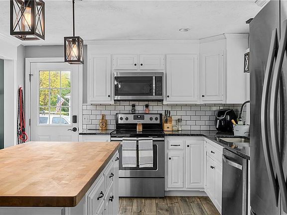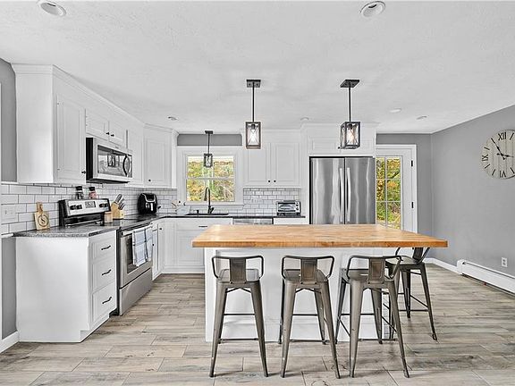 You have GOT to see this beautifully renovated 3-4 bedroom home nestled in the heart of Harrisville! NEW kitchen, baths, finished lower level - so new that the new ceiling and lighting didn't make the photos! Gorgeous touches throughout with modern lighting, granite, stainless, hardwoods and so much more. Finished lower with walk-out now offers a half bath with laundry, a bonus/rec room AND a 4th bedroom or office! Property is conveniently located within walking/short distance to the library, farmers market, dining, schools, town buildings and more. Other previous updates include a newer roof, windows and oil tank, too. You do NOT want to miss this!! Just move in!!!!
