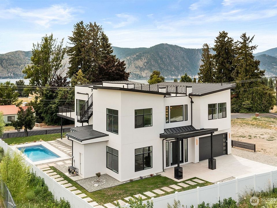 Welcome to the dream home you've been waiting for! This brand-new luxury residence offers 6 bedrooms (4 w/ on-suites), 7 bathrooms, and is perfectly located just minutes from the wineries, casino, and boat launch, yet tucked away for ideal privacy and convenience. Enjoy panoramic views of Lake Chelan and surrounding mountains from nearly every room. Relax in your private pool, unwind by the fireplace, or take in sunsets from the expansive rooftop deck. Features include Fisher & Paykel and Frigidaire appliances, EV charger, optional den/7th bedroom, no HOA, engineered wood floors, quartz countertops, access the poolside bathroom near the outdoor shower. Luxury Chelan living at its best. 1% buyer closing credit through generations home loans!
