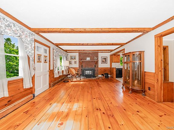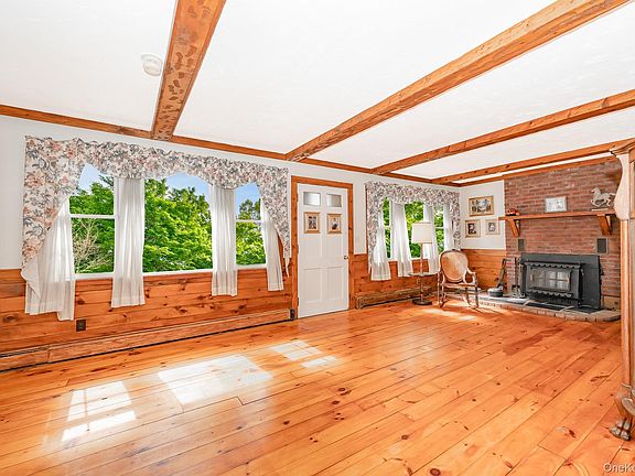 Location, Location, Location! A true diamond in the rough, this unique property offers unmatched potential in a prime setting. Situated nicely mid-block on a flat 1 Acre lot at the end of a dead end street, the home boast direct access to Blydenburgh Park from back paddocks, making it an ideal opportunity for builders, horse lovers or extended families. This rare find features eat in kitchen with lots of natural light, gas stove for cooking, large living room with wood burning fireplace, formal dining room with backyard views from sliding glass door, 3+ bedrooms and 2 full bathrooms/1 half bathroom. There is potential for separate living quarters on the lower level with a private entrance perfect for multi-generational living or guest accommodations. In the basement you will find plenty of storage, laundry and utilities. There are two existing barns one with 3 stalls the other with 2 stalls both barns have electric plus a corral making it an ideal horse property. Plenty of room for expansion, development or customization. Enjoy the best of both worlds- peaceful privacy with proximity to town conveniences. Located just minutes from the LIRR, shopping, dining, town beaches and local parks all this with super Low Taxes! Whether you're a builder looking for space to create or an equestrian enthusiast seeking a dream property this home offers limitless potential.