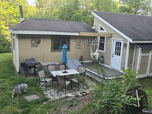 Looking for a country setting? This might be what you're looking for. This ranch sits across the street from a waterfall so you can enjoy the ambience year-round. The yard has beautiful perennials, is nicely landscaped and a firepit area to enjoy the summer evenings. This home is full of charm and personality inside and out. Enter into a bright and airy three season porch. Open floor plan boasts country kitchen, living room with cathedral ceilings, dining area, two bedrooms and bath. Nice patio and grilling area are bonuses in the backyard! Easy to show come see for yourself.