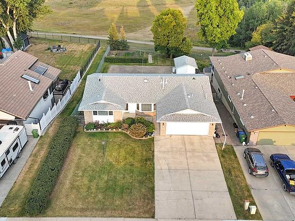 RARE OPPORTUNITY!! The original owners have cared for this wonderful family home since it was built and now it's ready for it's new owners! Situated above Red Deer's famous toboggan hill and backing on to the large green space with nearby walking and biking trails, this fine home overlooks the city to the South and offers fantastic views and privacy!! There is ample space for the entire family in this large walk-out bungalow, starting with a bright and airy front dining area which connects perfectly to the rear living room and kitchen - both positioned to capture the beautiful views! The large EAT IN kitchen includes hardwood flooring, quality oak cabinetry, a large center island, ample counter and cupboard space and has it's own breakfast nook. The large patio doors lead to a rear deck with glass rail and gas line for the BBQ, a great spot to watch the kids play in the big backyard and enjoy the fantastic view. The cozy living room is a great spot to socialize and with 3 generous bedrooms on the main level including the spacious primary bedroom with it's own 3pce ensuite and dual closets, this home works perfectly for young families and mature couples. The main level is completed with a full 4pce bath and a separate main floor laundry room. The fully finished lower level is on the ground level with direct access to the yard and is a great place for family fun with a large rec room complete with pool table, shuffle board table and wet bar. There is also a family room with a gas fireplace, separate storage room, 2 bedrooms (1 without a closet) and a 2pce bath - there is plenty of room to expand the bathroom. The 70x192 yard is fabulous with underground sprinklers, a large storage shed with overhead door, covered lower patio, garden area, and a volley-ball court! The front attached garage has an epoxy floor and multiple pilings when built for reinforcement. Other notable features of this fine home include; 2 hi-efficiency furnaces in 2024, all new windows, siding, and Styrofoam wrap for added insulation in 1999.