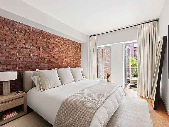 Quiet private terraceExposed brick wallsBosch washer and dryerSouth-facing bedroomsHigh ceilingsLarge walk-in closetOversized en-suite bathroom
