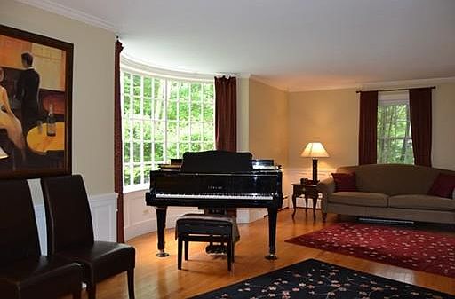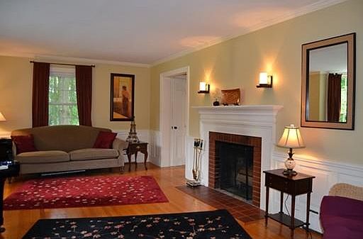 GREAT OPPORTUNITY TO LIVE IN THIS CUSTOM BUILT COLONIAL STYLE HOME CENTRALLY LOCATED NEAR THE DOWNTOWN OF ANDOVER. This home offers wonderful floor plan with a beautiful oversized bow windowed fireplaced living room, formal dining room all with hardwood floors and quality wainscoating, custom built in cabinetry w closets. The kitchen is fully applianced with Energy Star Rated Refrigerator, Dishwasher, Cooktop Range, Wall Oven...hallway leads to half bath and bright and sunny family room with sliders to where the deck used to be as well as a door with access to the side driveway/parking.. The second floor offers a spacious fireplaced (*yes you read that right")Master BR with large hallway w ample closets leading to Master Bath w soaking tub and seperate shower. There are two additional bedrooms and an updated second full bath with double vanity and showered bathtub. The lower level is fireplaced and partially finished w Great rear yard & patio access. Oversized Heated Garage