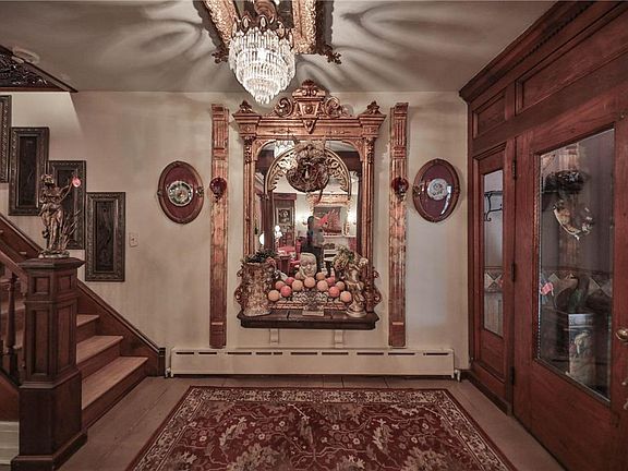 Own a piece of history! Antique lovers will adore this Victorian home set on West Broadway in the quaint village of Jim Thorpe. This historic home was used as a convent for the “Sisters of the Immaculate Conception”. Restored by previous owners, the house embodies all the elegance of the town’s origin as a vacation spot for wealthy industrialists. Built in 1856, the 2BR, 1 BA home features an antique gas stove in the kitchen. A double front door opens into a fabulous living room and dining room with gorgeous marble fireplace and built-in curio cabinets. Plank floors, original woodwork, built-in bookcases, fireplaces, and original stained-glass windows and chandeliers add charm throughout the living space. A dramatic staircase takes you up to a living room/library, lit by a cathedral ceiling and warmed by a gas fireplace. The library opens out to a garden area with two-tier patio and Koi Pond. Offering privacy and luxury, stained glass double doors, carved closet doors, and an adjoining, ceramic-tiled master bath complete the master bedroom. A spiral staircase leads to a third-floor bedroom suite with a half-bath. The house is for sale furnished, giving buyers the extraordinary opportunity to move in as is. The best part is the location: Jim Thorpe is a vibrant destination with festivals, train rides, bike trails, hiking, restaurants, and cultural activities. Surrounded by history, it's the perfect place to live or retire!