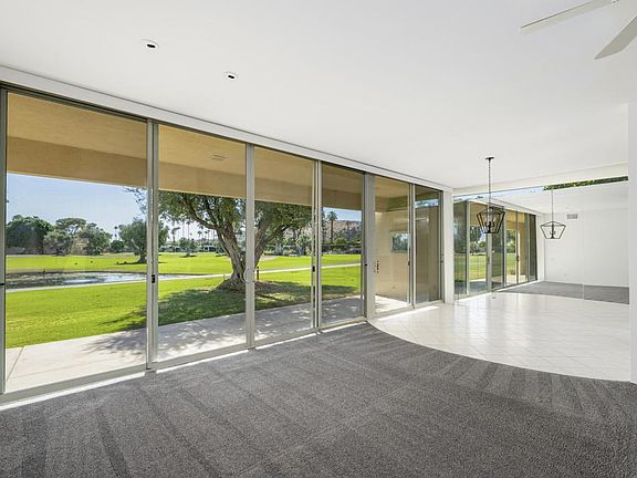 Located on the 18th green and overlooking the 7th Lake at the coveted Seven Lakes Country Club, all that's missing from this lovely 2bed/2bath home is your personal touch! This getaway is on a quiet cul-de-sac and was originally designed by Richard A. Harrison. Spread out over the 1,545 sq ft open floor plan, its spacious living room and dining area are ideal for entertaining or just taking in the desert's tranquility. Enjoy the best of Palm Springs' indoor/outdoor living with walls of updated glass sliders opening out onto a leisure terrace with double fairway views to the East. Or step through the Western window wall to a large courtyard, enclosed for maximum privacy, and its magical San Jacinto mountain vista. Both large bedrooms are tucked privately in back and offer great closets as well. This was a primary residence for over a decade has been lovingly maintained, including a newer HVAC system and an upcoming roof re-coating. An assigned garage is nearby while the tranquil pool is just steps away. Past the 24-hour guarded front gate, 'The Gem of the Desert' offers a unique elevated lifestyle with its Ted Robinson-designed 18-hole executive golf course, 15 pools and spas with poolhouses, tennis courts and the lively William Cody-designed clubhouse with a formal dining room, casual cocktail lounge, and a terrace overlooking the waterfall-fountain. Welcome home!