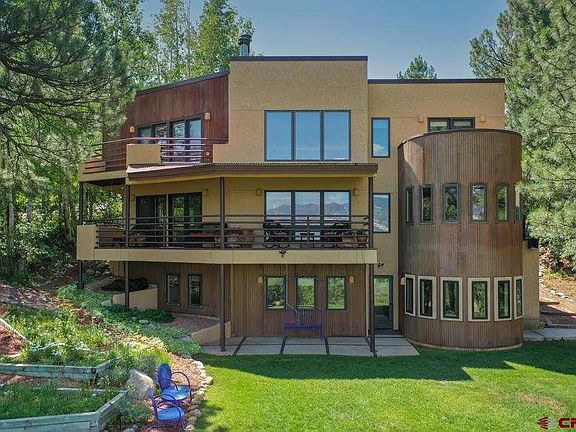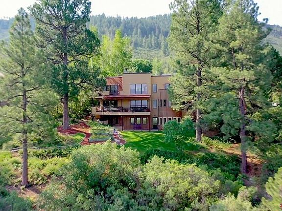 Gorgeous home in Timberline Estates perched on a rim lot with magnificent views of the mountains and the Animas River. Comes fully furnished and features walls of windows and five decks. The main living area is an open concept kitchen updated in 2017, with formal dining, living, cozy fireplace, library, and laundry. Massive windows draw the eyes out to the majestic mountain and valley landscape. Upstairs are 3 bedrooms, including the master suite with its own fireplace and private deck and a mother-in-law suite. Downstairs is the turret sitting area, media room, two bedrooms, and one full bathroom with heated floor finished in 2015. A recirculating cooling system moves air efficiently throughout the home. Step outside to enjoy the landscaped backyard, a grassy area for the kids to play, dog run, and invisible fence. Beautiful walking paths surround the home, and miles of hiking and biking trails are minutes away. The exterior is natural colored stucco and was redone in 2011. The generously sized two car garage has a full basement providing a workshop and plenty of space for projects and storage, as well as 4 uncovered parking spaces. Privacy like this is extremely rare so close to town. The exterior and grounds have been updated for fire mitigation. The home of the Phoenix Rising is one-of-a-kind, come take a look.