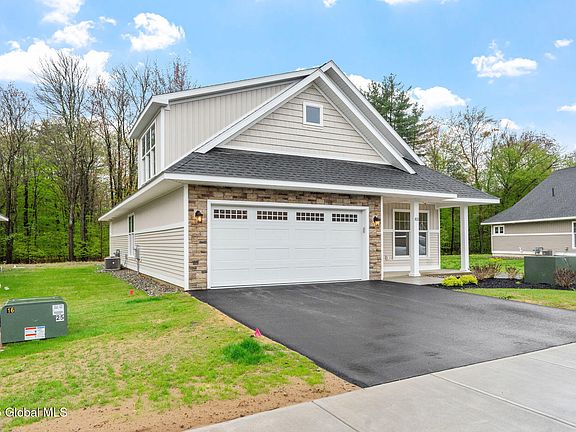 Move-in Ready! Completed NEW CONSTRUCTION! Rotterdam's Newest 55+ Community. Experience effortless one-floor living in our spacious 1500 sq ft cottage! Enjoy a covered front porch, a versatile den, and a primary suite with a walk-in closet and private bath. A guest bedroom also offers a walk-in closet, and there's a convenient main bath. The eat-in kitchen features granite counters and stainless steel appliances, flowing into a combined great/dining room with sliding doors to a covered patio. Benefit from a walk-up 650 sq ft attic, a 2-car attached garage with opener, epoxy floor, and EV charger, plus off-street parking. Features include natural gas heat, electric hot water, a full basement, and interior selection options. HOA, Clubhouse & Golf Course!