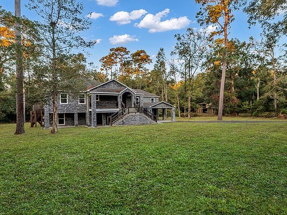 Offered by Homesteps - Unique 2 story in Woodbranch on 1.6 acre, wooded lot. Main living area on the 2nd floor offers a den with fireplace that opens into the kitchen, formal dining and breakfast area.