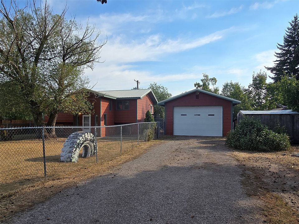 Spacious split level features primary ensuite with 3/4 bath and additional bedroom on main level including a full guest bath. Spacious living room open to kitchen with lots of cabinets and dining area. Kitchen has attached laundry room to exterior door with stairway down to detached 2-car oversized insulated garage. Downstairs has a recreation room, 2 additional bedrooms and bonus room connected to mechanical room. There is a 3/4 bath plumbed for buyer to finish. The front and back yard are chain linked fenced with gates separating front and back yard. Excellent opportunity for a great in -town location.