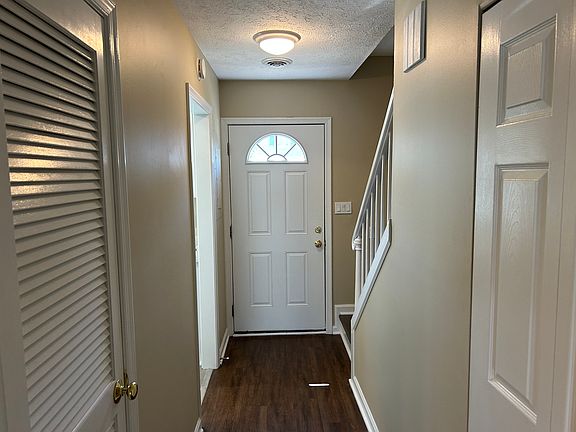 The kitchen offers stainless steel appliances and ample cabinetry space. More natural light comes through the kitchen from the front of the townhome. Before leading upstairs to the bedrooms is the half bath and closed off area for the washer/dryer.