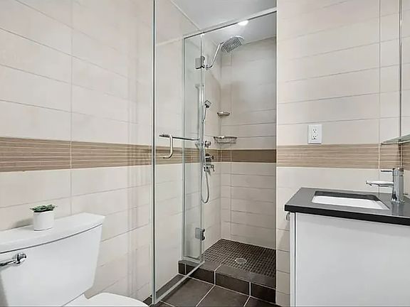 Sun drenched SOUTH AND WEST facing apartment with great storage . Gorgeously renovated kitchen with Cesar stone countertop, stainless steel appliances including convection oven and electric stovetop. The home has strip wood flooring. Beautiful, windowed tiled bathroom with glass enclosed shower and vanity with storage.