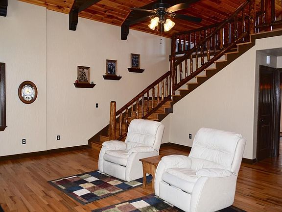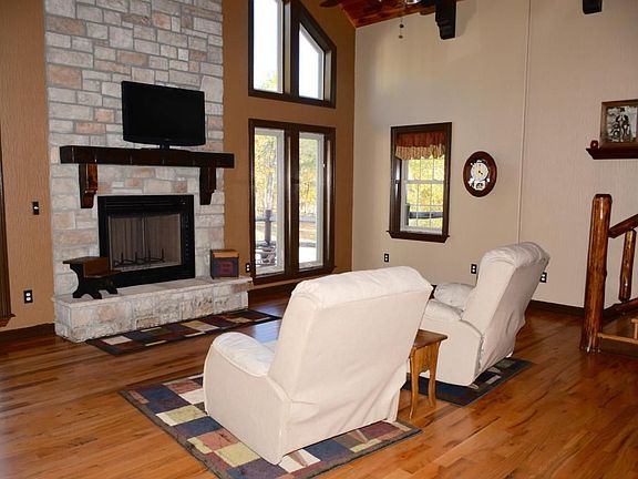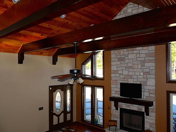 'Awesome'' is the only word to describe this magnificent home that sits on 3.13 acres with a wet weather creek on the back of the property. Within walking distance to the lake. Home has 4 bedrooms, 3 full baths plus a detached apartment with its own kitchen and bath.Home was already an energy efficient Log home and sellers added Solar panels in 2016 that makes it REALLY Energy Efficient. Cedar vaulted ceiling open loft area w/hardwood floors & cedar bannister. Tall Stone fireplace w/trapezoid Argon Gas windows. New stainless appliances, Granite countertops and stone accent breakfast bar. Basement area plumbed for wet bar. Enclosed deck on back of home. List of all improvements on display at home.