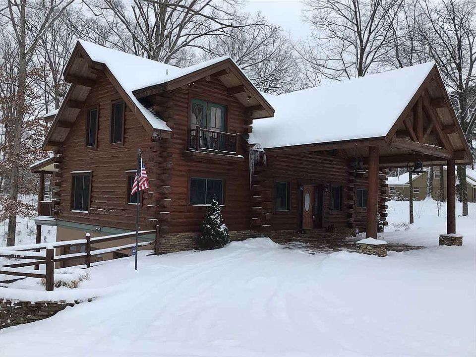 Welcome Home to Dogwood Hills, a handcrafted, Amish built custom log cabin sitting on over a wooded acre. The home was crafted by Meadowlark Log Homes of Libby, MT. The logs range from 9 to 18 inches in diameter. Beautiful tongue & grove pine ceilings are featured on levels 2 and 3. The family room boast a 2 story stone fireplace and breathtaking window views can be seen throughout the home. Pulling up under your porte cochere feels like you're stepping out at a luxury lodge in the mountains