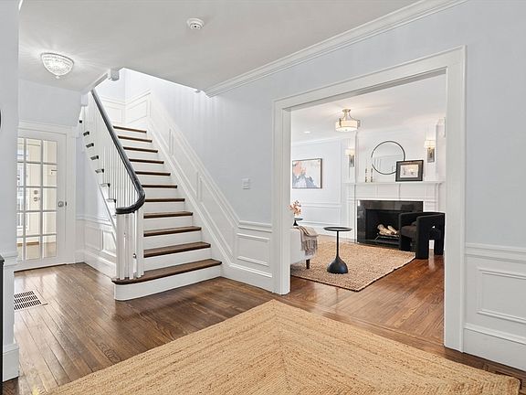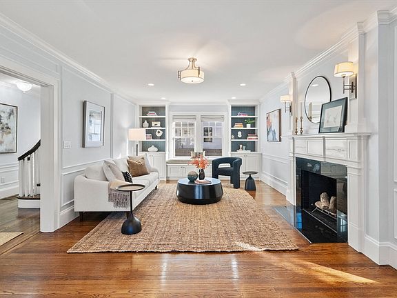 Stunning, renovated 10-room home with Boston Marathon views! This exceptional residence blends elegance, comfort, and convenience in a highly desirable location. Meticulously renovated with high-end finishes, the thoughtful floor plan is perfect for modern living. Sun-drenched rooms span four levels. The first floor features an open-concept kitchen with center island, high-end Viking appliances, double ovens, sinks and dishwashers leading to the family room with a gas fireplace. Inviting porch perfect for al fresco dining. The second floor offers a luxurious primary suite with walk-in closet. The third floor has a large room ideal for guests/home office with sitting area and full bath. The finished basement, with a bathroom, is perfect for a playroom/gym. A mudroom connects to the heated two-car garage. Professionally landscaped fenced-in yard on a corner lot with driveway and garage on Morton Street. Close proximity to houses of worship, Newton Center shops and dining, public transit.