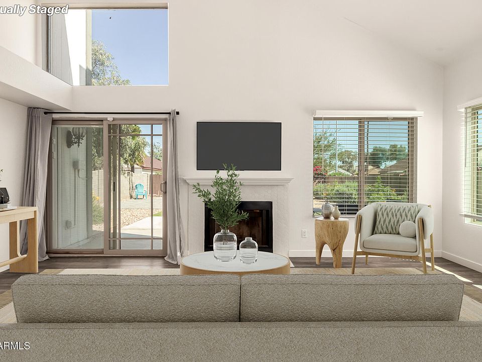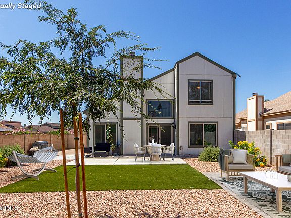 Welcome to your beautifully updated 3 bedroom, 2.5 bathroom home nestled on a desirable corner lot in Stonegate Crossing. Step inside to discover a remodeled kitchen featuring sleek white shaker cabinetry, elegant quartz countertops, stainless steel appliances, and breakfast bar that opens seamlessly into the spacious great room with a cozy fireplace. Enjoy the durability and beauty of luxury vinyl plank flooring throughout the first floor. The private backyard is a serene retreat with mature landscaping, artificial turf, and a paver patio ideal for outdoor dining and gatherings. Community perks include access to a pool and children's playground. With close proximity to freeways, downtown Chandler, top-rated schools, shopping, restaurants, and more!