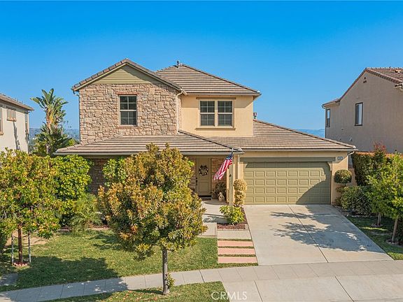 .VIEW, VIEW, VIEW of San Gabriel Valley from East to West including skyline of City of Los Angeles plus beautiful view of hillside from the charming front porch and rooms on the North side of this home. And yes, there is a full master suite on the ground level with sliding glass doors to the patio and a full master suite on the second floor with the view in it's full glory, 1st floor master features double sinks, soaking tub, walk in shower and large walk-in closets plus private commode area. 2nd floor master features his and her sinks/cabinets and his and her walk-in closets with a large walk-in shower. The kitchen is a chef's dream with plenty of counter-top area for prep which is finished with a wonderful choice of granite and coordinated backsplash plus lots of cabinets to store all the necessities and it has a butler's Pantry + a large walk-in pantry. Easy access to serve on the patio (taking even more advantage of the view) that has an enjoyable California Room (eating area enclosed on three sides) open to the view. The yard has a grass area that is ready for playing games like corn-hole, croquet, etc or take advantage of the pre-installed electrical hook-ups and add a spa to your outdoor living area. The Great Room with fireplace is on the first floor and is completely open to the kitchen plus this home has a family/game room upstairs as well which takes full advantage of The Hillside View. Located in the North Rosedale Community there are walking paths, bike trails, parks, community center with clubhouse, pool and workout center all for your enjoyment. It is truly a special property in a very special location.