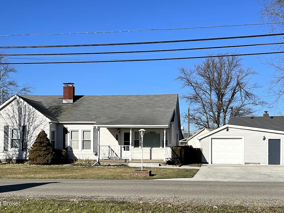 This charming 2 bedroom, 1 bath home presents an opportunity to bring your personal touch and make this home unique to you. Hardwood floors and a versatile layout that could accommodate a third bedroom. Fisher stove provides back up heat if needed. Unwind in the fenced in back yard on the spacious deck or on the front covered porch watching the sunset. The detached garage is complete with a workshop and offers functionality and the possibility of conversion into a 2-car garage if extra space is needed. Conveniently situated across the street from the sports complex, enjoy the energy of athletic activities just steps away. For nature enthusiasts, Clifty Falls State Park is minutes from your doorstep, offering an abundance of outdoor adventures. Schedule your showing to see all that this home has to offer.