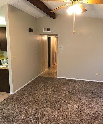 2 bedroom, 1.5 Bath unit with fireplace, vaulted ceilings in the living/dining area, tile floors with carpet in the bedroom & living room, walk in closet in the master.